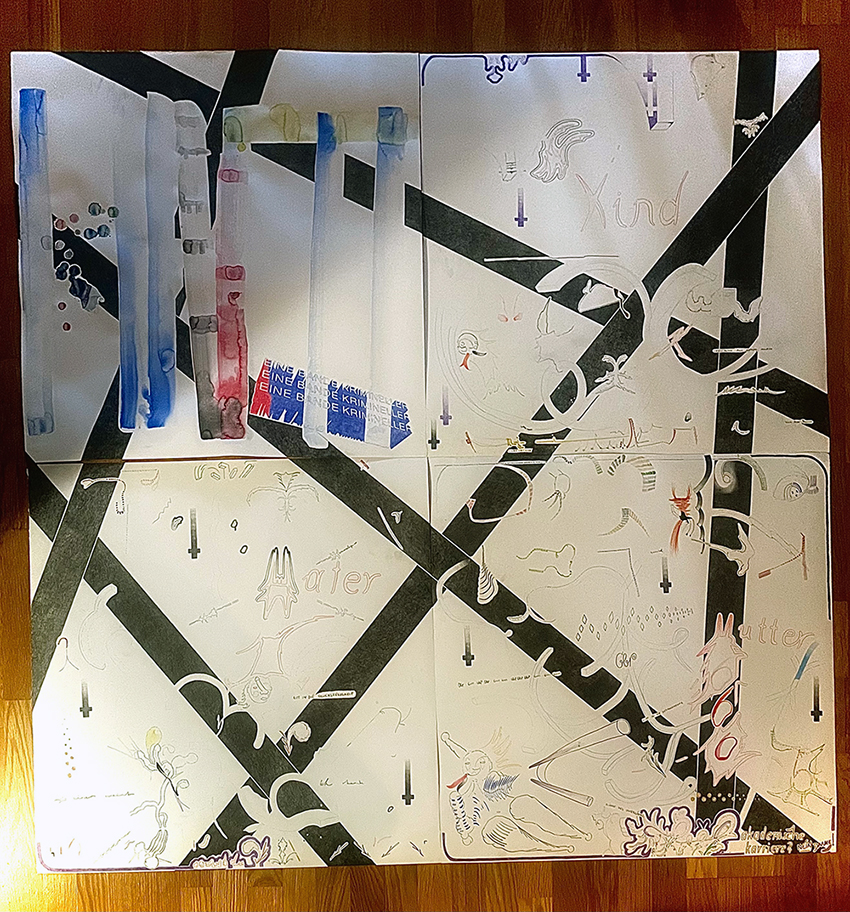 Buntstift und Aquarell auf Papier, 150cm x 150cm